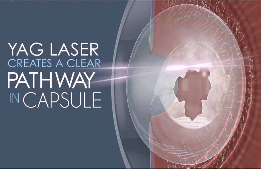 YAG Laser Capsulotomy: The most common use of YAG lasers in eye care is to treat clouding of the posterior lens capsule after cataract surgery (PCO). After a cataract is removed and an artificial lens is implanted, sometimes the capsule behind this new lens becomes cloudy months or years later, causing blurred vision and glare. During the capsulotomy, the laser creates a tiny opening in the cloudy capsule, restoring clear vision without incisions or stitches.